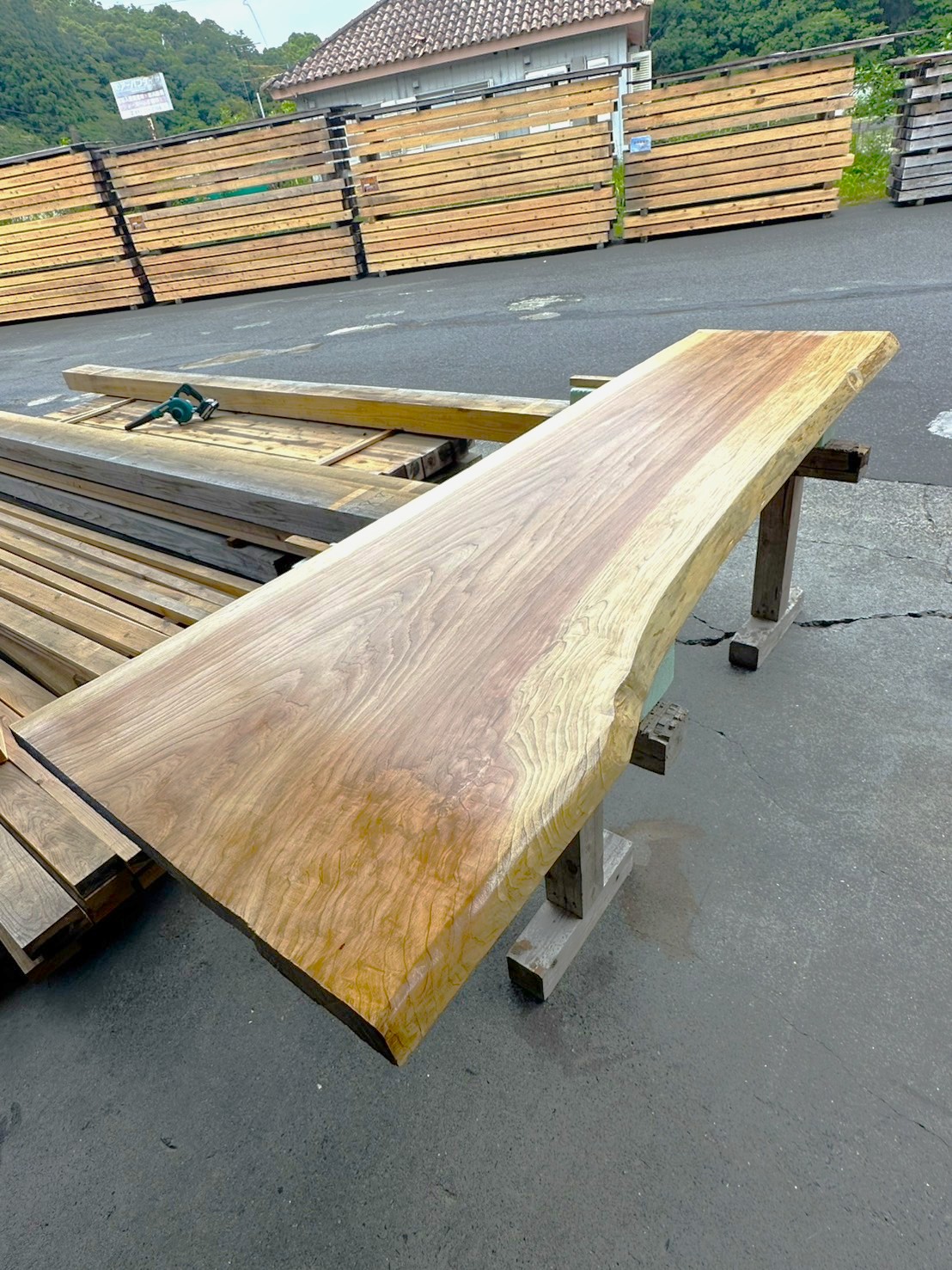 一枚板磨き中のスタッフの様子を撮影しました📸